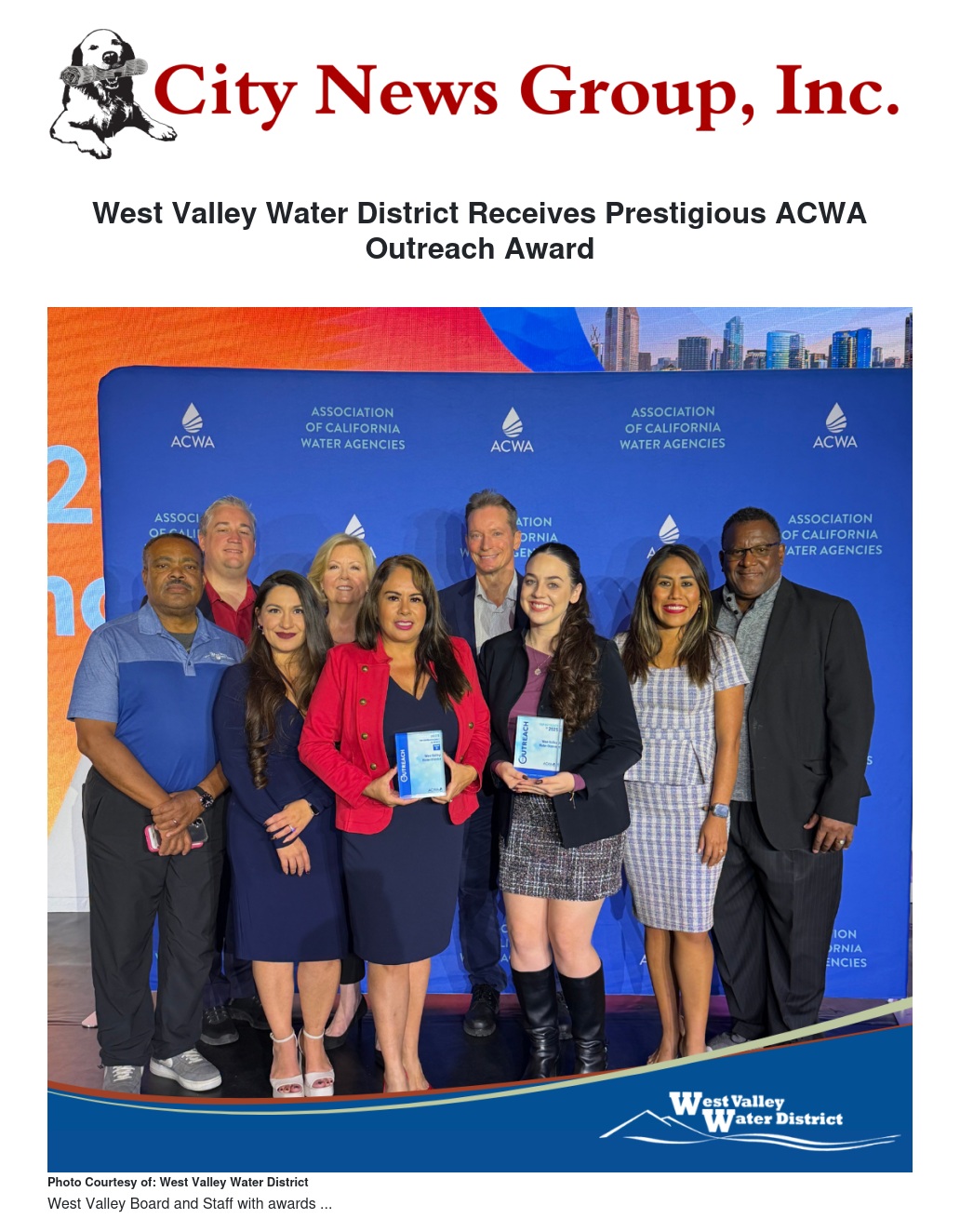 West Valley Water District Receives Prestigious ACWA Outreach Award by Socorro Pantaleon - City News Group, Inc.